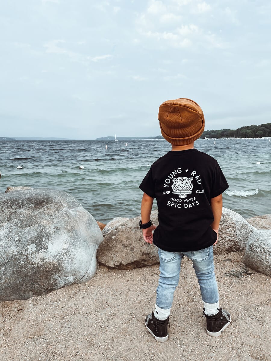 Founded by Shayna Piva, Young + Rad is an apparel brand for “rad little groms.” Inspired by surf and moto clothing, Young + Rad proves that kidswear doesn’t have to be cheesy. Piva started the brand after experiencing difficulty finding trendy, graphic T-shirts for her infant son. “I was shopping around and trying to find certain styles, [particularly] cool, effortless looks for the kids that weren’t your stereotypical dinosaurs and colorful stuff,” describes Piva.
