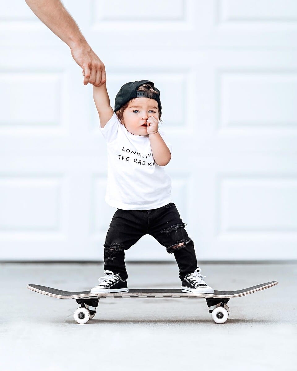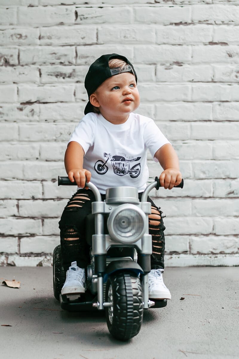 When developing new garments, Piva finds inspiration by looking at what’s fresh and innovative for adults and translating these viral concepts into clothes that resonate with parents and children alike. “Mommy-and-me-type styles are such a trend…I thought it would be fun to take these styles…and be able to have matching tees for the whole family,” remarks Piva. Since creating the inaugural Long Live The Rad Kids design, Piva has expanded her offerings into collections for babies, toddlers, kids, adults and families. Best-selling items include the motorcycle tee as well as shirts with phrases like “Little Legends” or “Mama’s Little Dude.” “People love the sayings on the kids’ shirts,” mentions Piva. Young + Rad Kids Clothing